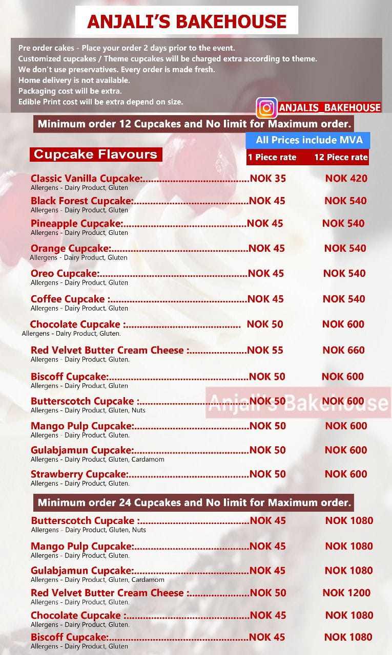 Cupcake Menu